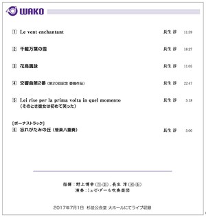 長生淳の世界 ミュゼ ダール吹奏楽団 第20回定期演奏会 Wkcd 0108 Wako Records Inc