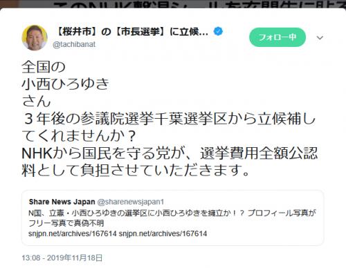 N国党 立花孝志党首 全国の小西ひろゆきさん 3年後の参議院選挙千葉選挙区から立候補してくれませんか ニコニコニュース