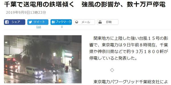 O Xrhsths Starknight Sto Twitter 截至昨晚八点 千叶县全域仍然有28万余户居民处于停电状态 从9月9日15号台风 Faxai 登陆算起已经超过72小时了 有评论家说如果这次台风路径向西偏移几十公里 造成东京如此大规模 长时间的停电 日本将陷入 首都麻痹 的状态
