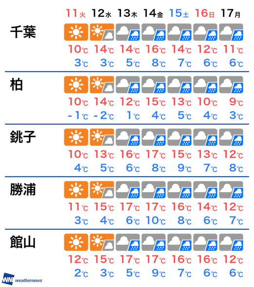 2月11日 火 千葉県の明日の天気 ウェザーニュース Line News