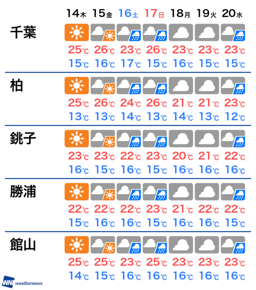 5月13日 水 千葉県の今日の天気 ウェザーニュース Line News
