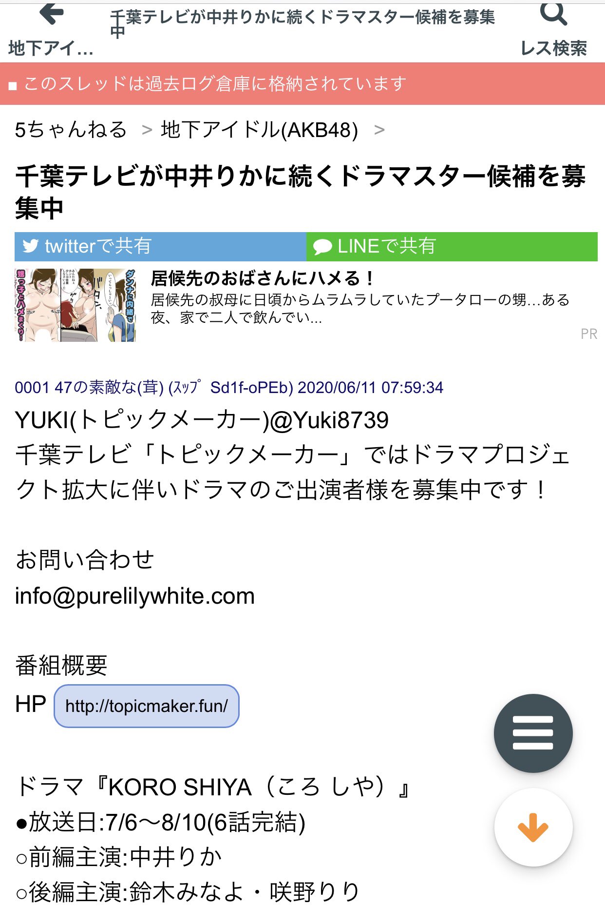 Yuki On Twitter 千葉テレビが中井りかに続くドラマスター候補を募集中 えっ と 僕は千葉テレビさんのスタッフではないです 千葉テレビさんやテレビ埼玉さんによくお世話になってるただの番組 ドラマプロデューサーです ただ ドラマスター候補は常に