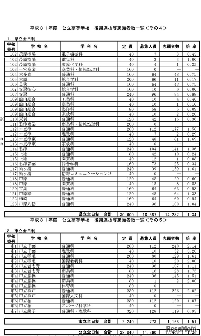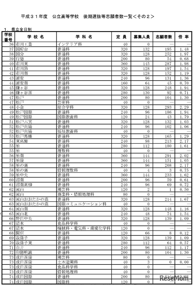 高校受験2019 千葉県公立高入試 後期選抜の志願状況 倍率 2 22時点 県立千葉 普通 2 29倍など 4枚目の写真 画像 リセマム