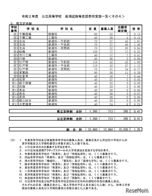 高校受験2020 千葉県公立高入試 後期選抜の志願状況 倍率 確定 県立千葉 普通 1 82倍など 7枚目の写真 画像 リセマム