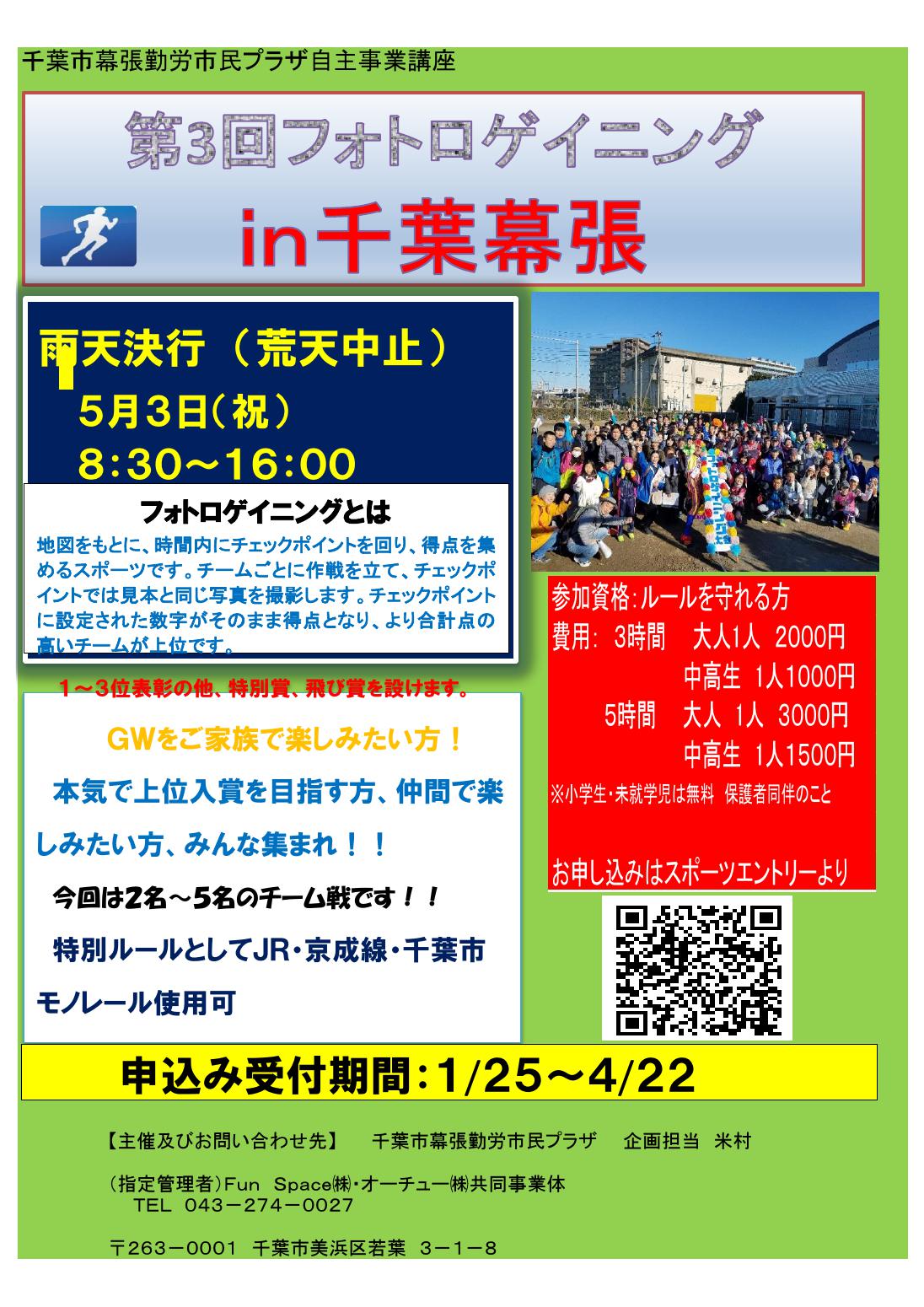 幕張勤労市民プラザ 第3回フォトロゲイニングin千葉幕張が開催されます Fun Space株式会社