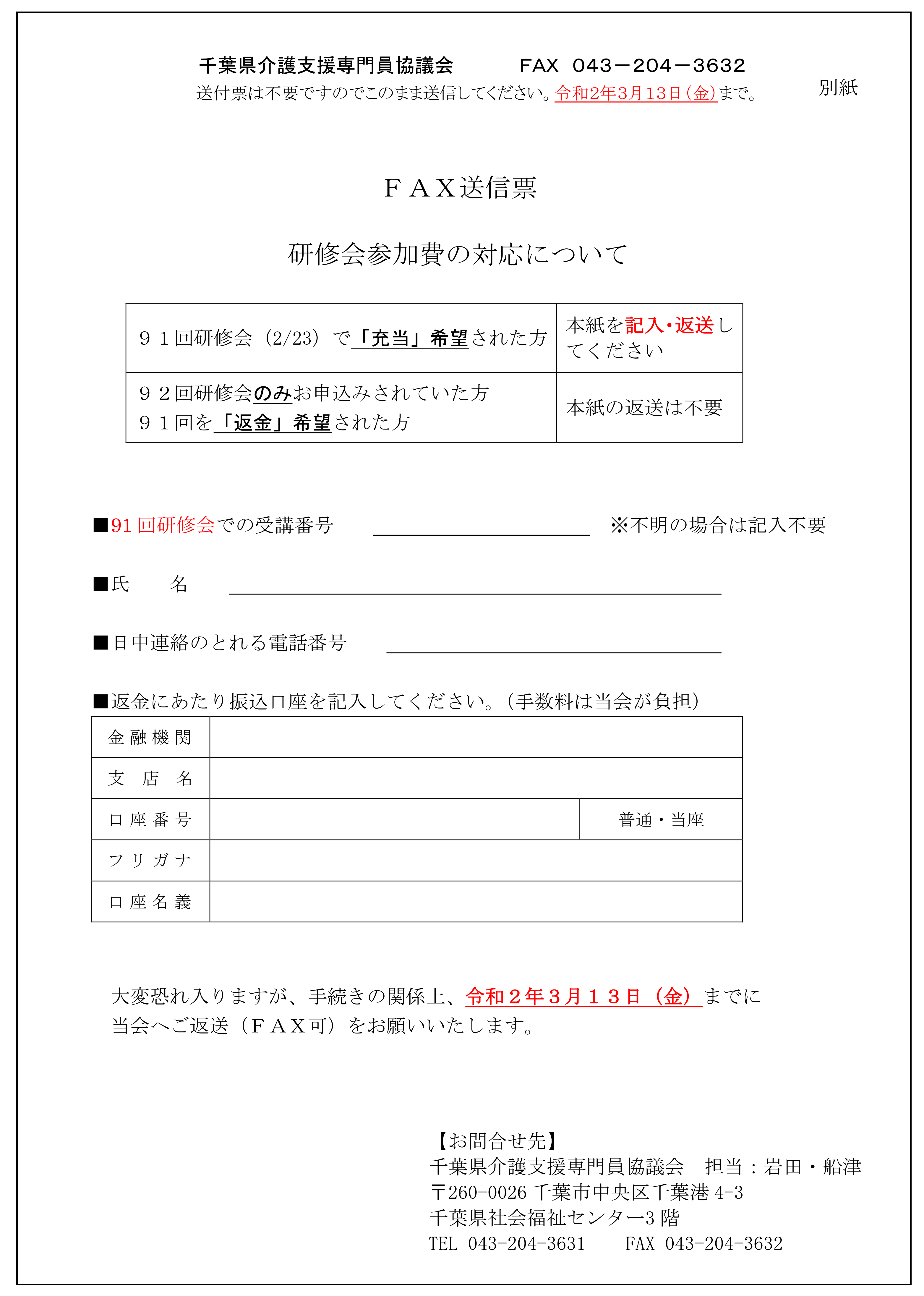 第92回研修会 ファシリテーションスキル 3 14 研修開催中止のお知らせ 特定非営利活動法人 千葉県介護支援専門員協議会