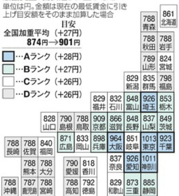最低賃金 東京 神奈川は1000円超え 日本経済新聞