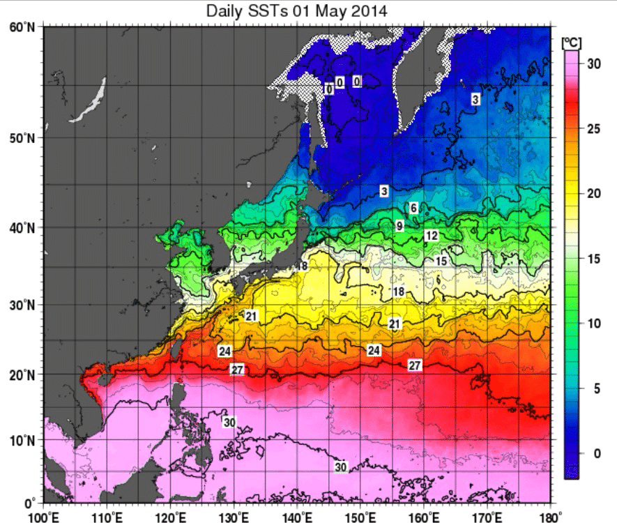 日本近海の海水温分布の通年変化 Shinmr Note