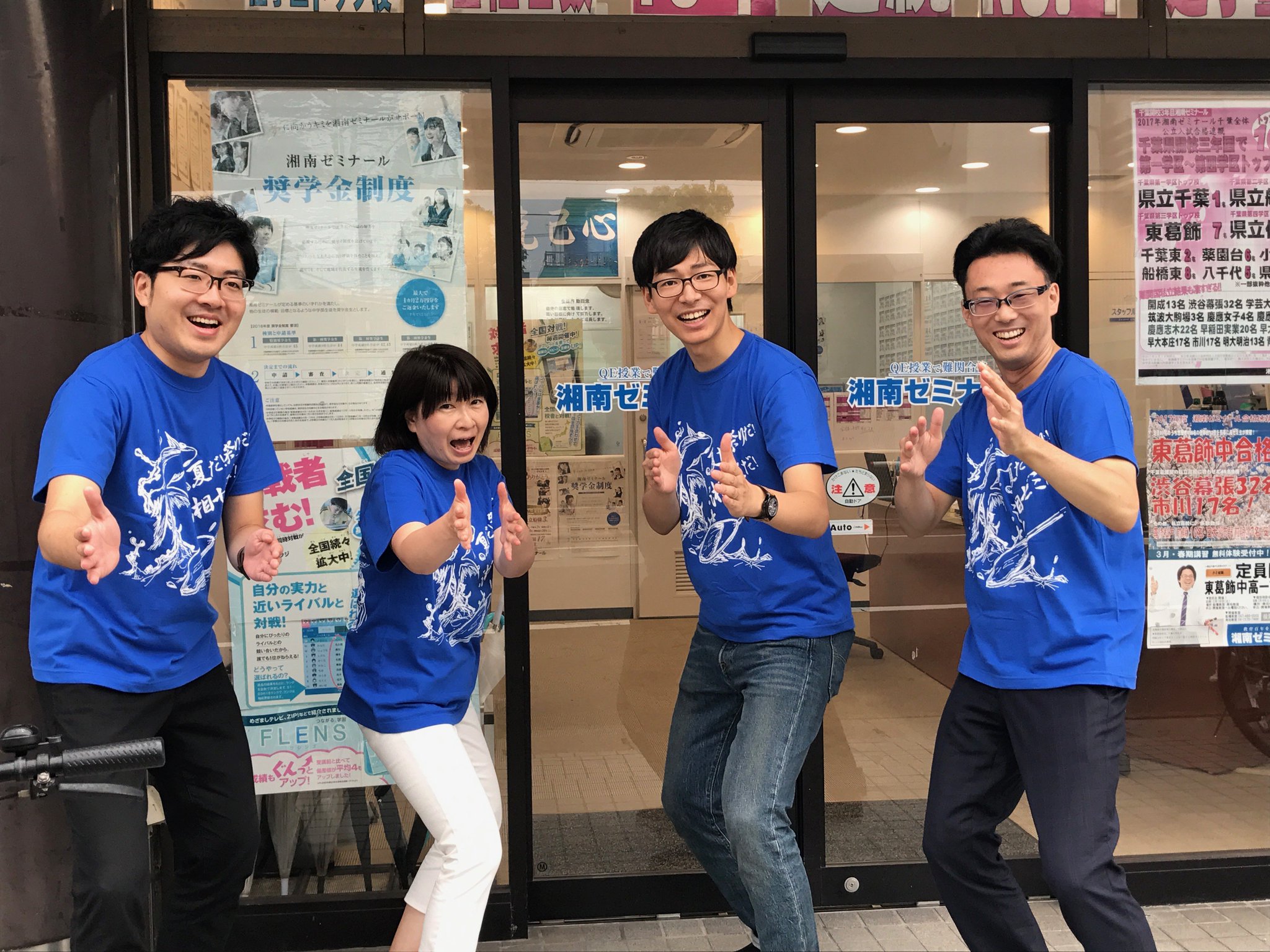湘南ゼミナール公式 No Twitter Tシャツday 湘南ゼミナールの千葉の教室も青く染まってます 西船橋 南行徳教室の先生たち 夏期講習でみんなの成績を上げたい 湘南ブルーコレクション 湘ゼミ Tシャツ