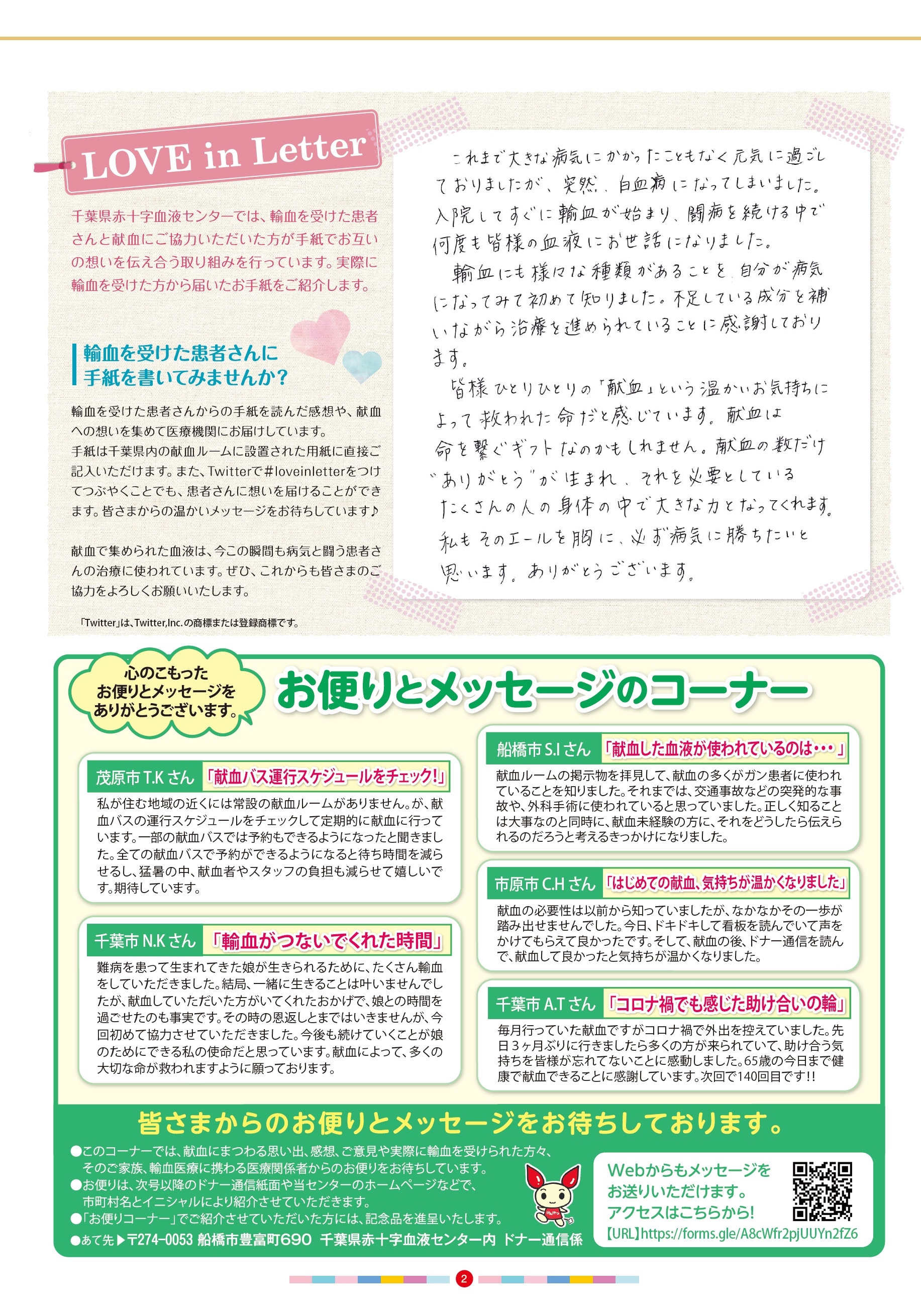 ドナー通信 千葉県赤十字血液センター 日本赤十字社